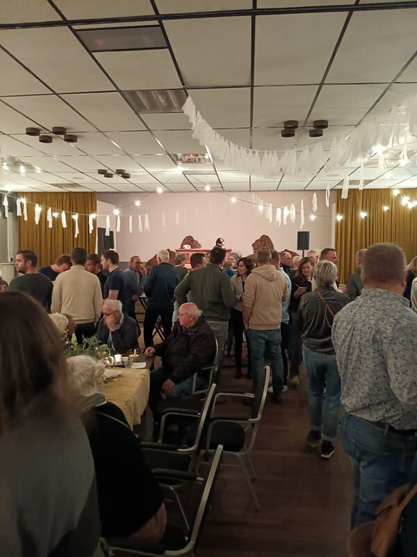 Veel dorpelingen, van jong tot oud zijn langs gekomen om lekker met elkaar te kletsen. Voor de kinderen waren er twee luchtkussens in de gymzaal. Ook voor een hapje was gezorgd. Alles bij elkaar prima verzorgd en veel mensen gingen lekker door tot in de avond.